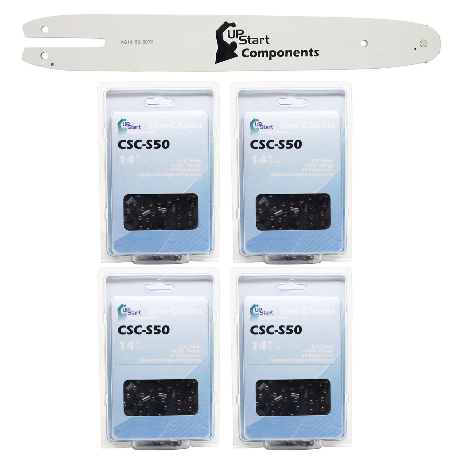 - UpStart Components 14-Inch Chainsaw Bar and 4 Chains Combo Replacement for STIHL 021 - (14 inch Length, 3/8" Low Profile Pitch, .050" Gauge, 50 Drive Links, 7 Sprocket Nose Tooth)