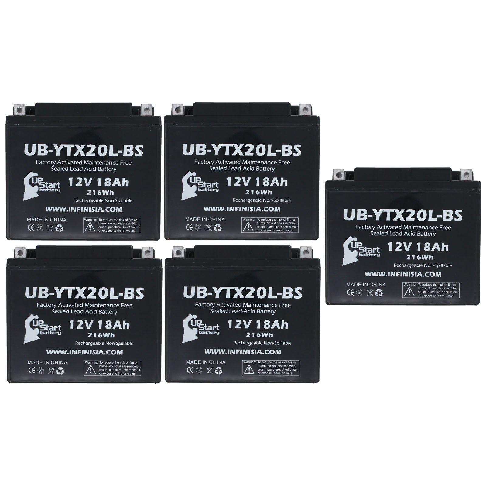 UpStart Battery Brand - 5-Pack Battery Replacement for 1999 Buell S3, S3T Thunderbolt 1200 CC Motorcycle - 12V, 18AH