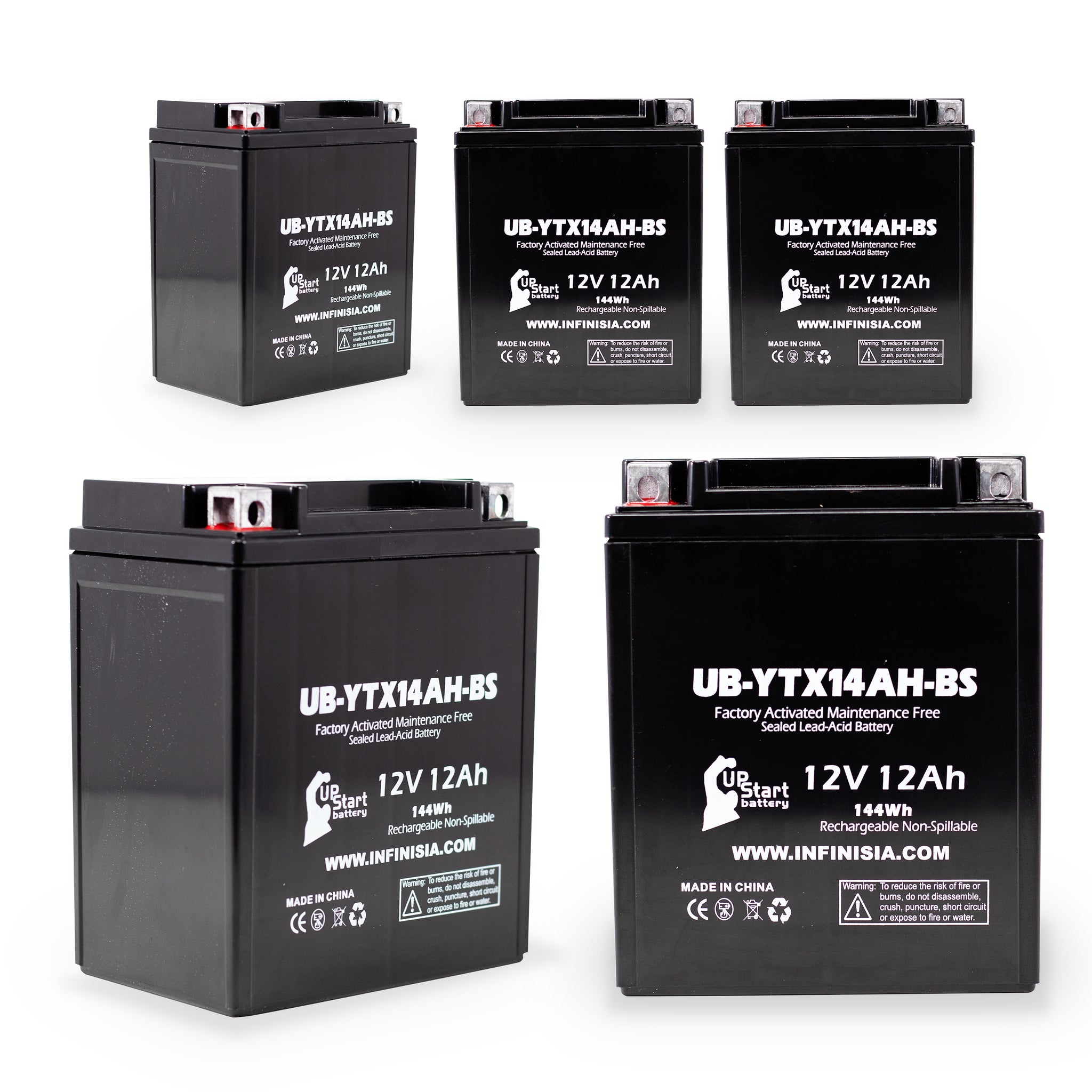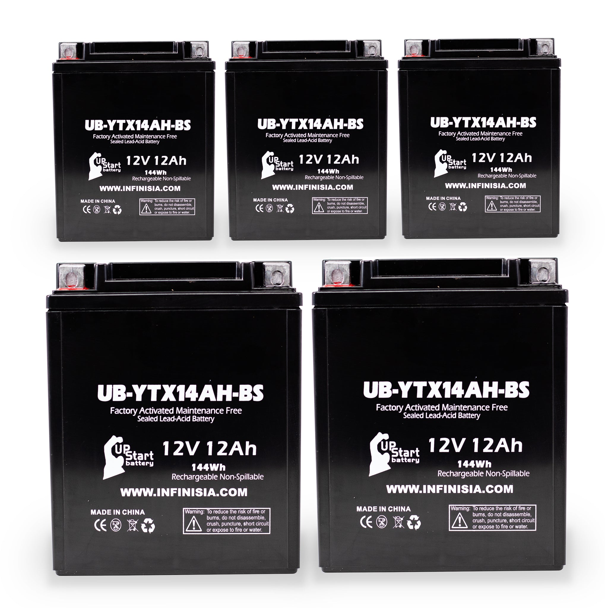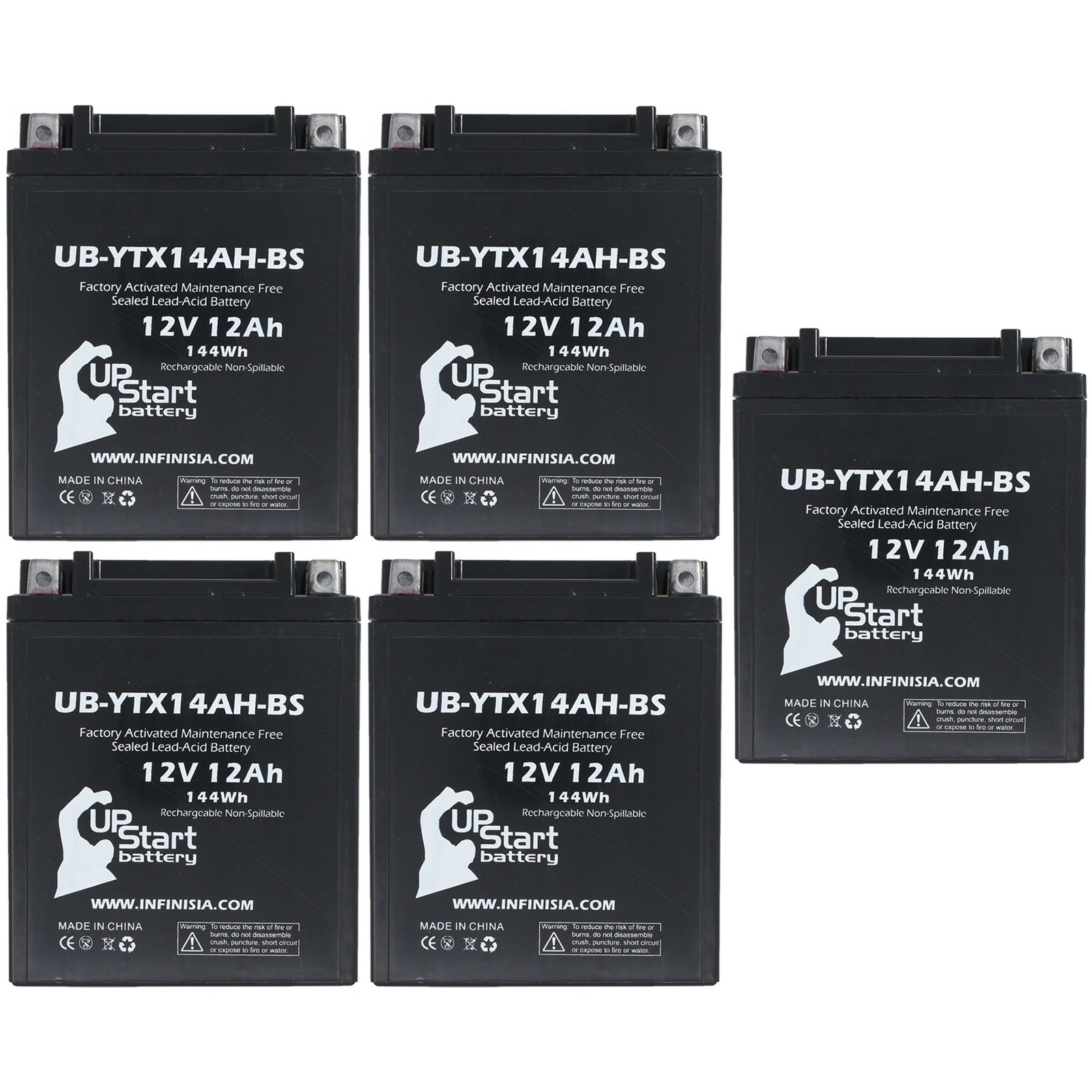 UpStart Battery Brand - 5-Pack Battery Replacement for 2002 Kawasaki KLF220-A Bayou (CN) 220 CC ATV - 12V, 12AH