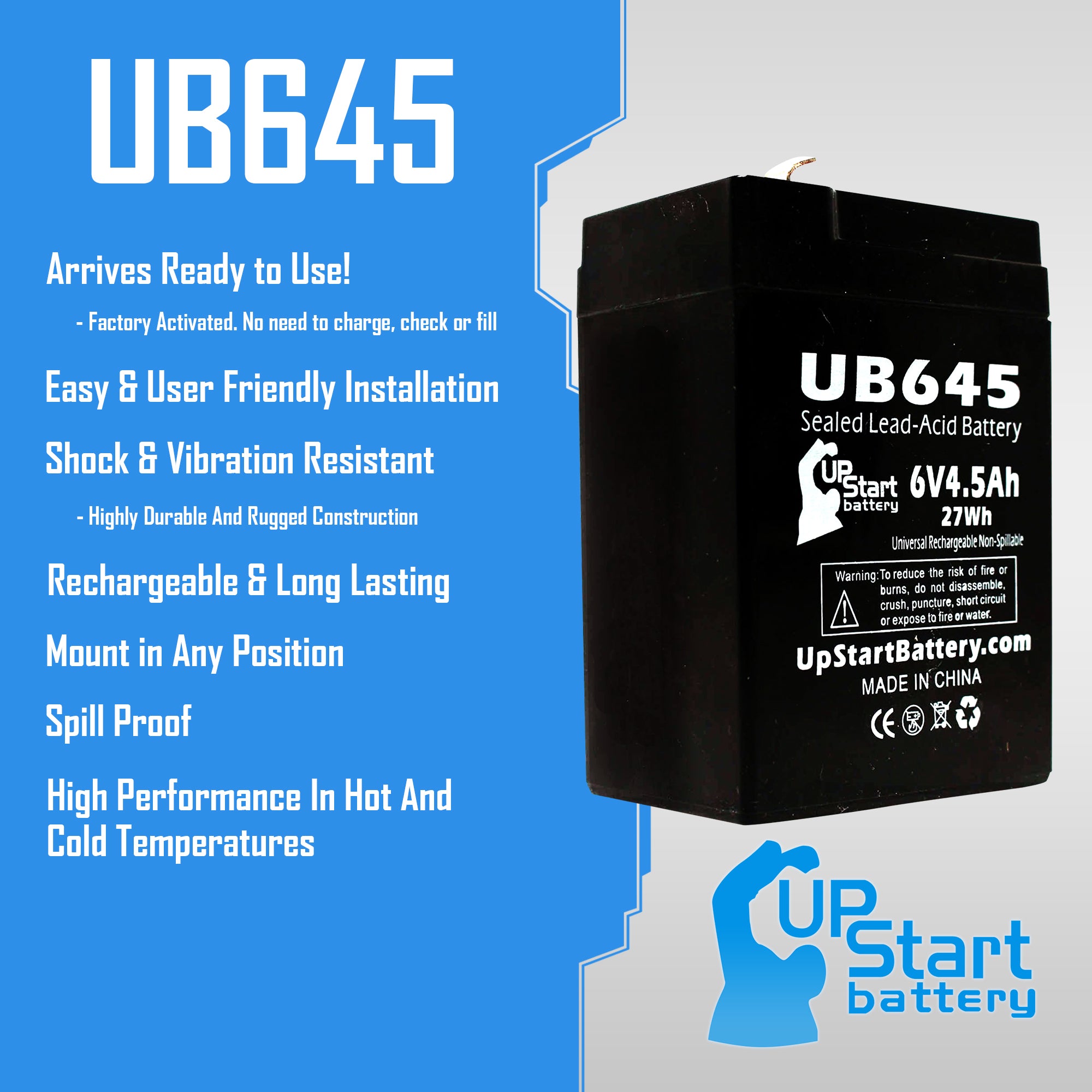UpStart Battery replacement for American Hospital Supply 9009183 Battery - Replacement UB645 Universal Sealed Lead Acid Battery (6V, 4.5Ah, 4500mAh, F1 Terminal, AGM, SLA) - Includes TWO F1 to F2 Terminal Adapters. This American Hospital Supply 9009183 Battery - Replacement UB645 Universal Sealed Lead Acid Battery (6V, 4.5Ah, 4500mAh, F1 Terminal, AGM, SLA) - Includes TWO F1 to F2 Terminal Adapters is compatible with the original and will provide great performance for an excellent price.