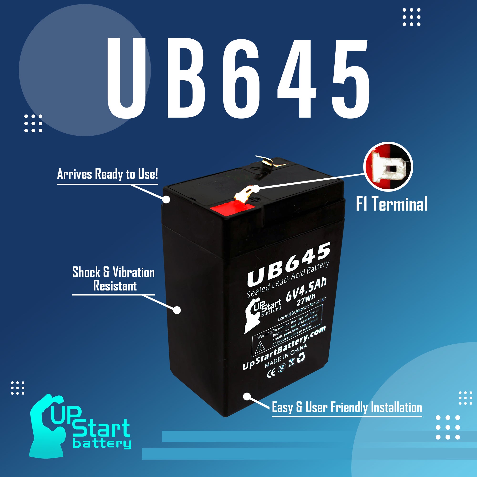 American Hospital Supply 9009183 Battery - Replacement UB645 Universal Sealed Lead Acid Battery (6V, 4.5Ah, 4500mAh, F1 Terminal, AGM, SLA) - Includes TWO F1 to F2 Terminal Adapters